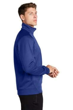 Cool, dry and colorfast, this quarter-zip pullover has a pill-resistant, snag-resistant face with a matte finish and brushed backing for comfort. It features double-knit construction, as well as a zippered pocket on the left sleeve and a chin guard.