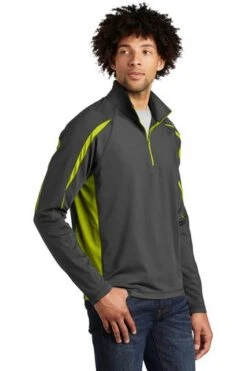 Sport-TeK Sweatshirts: Men’s ST851 CGCG Charcoal Grey Charge Green Stretch 1/2-Zip Colorblock Pullover